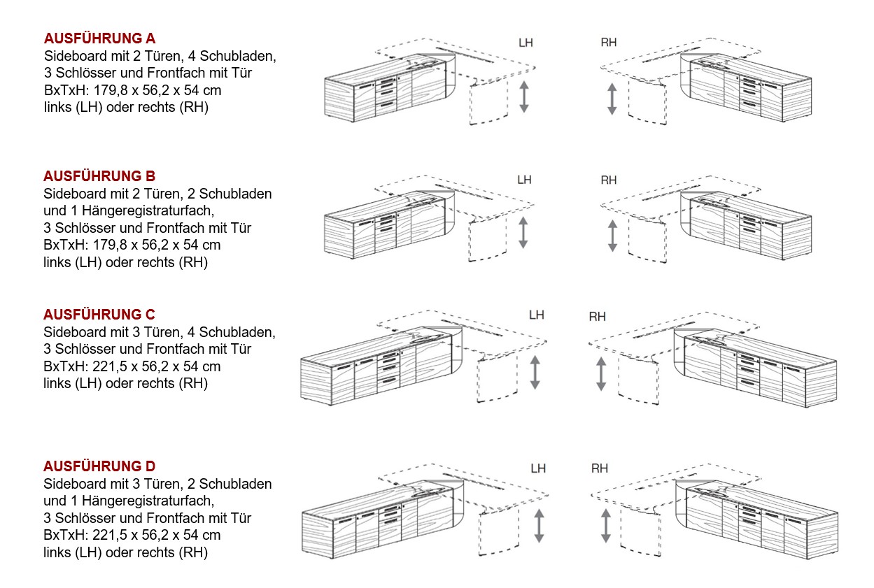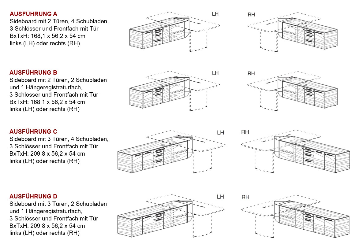 Sideboard in 4 Ausführungen erhältlich, Abmessungen (BxTxH):
