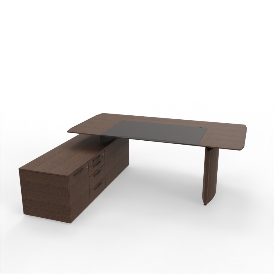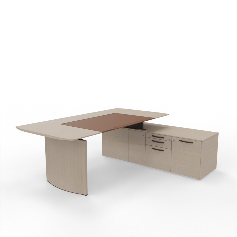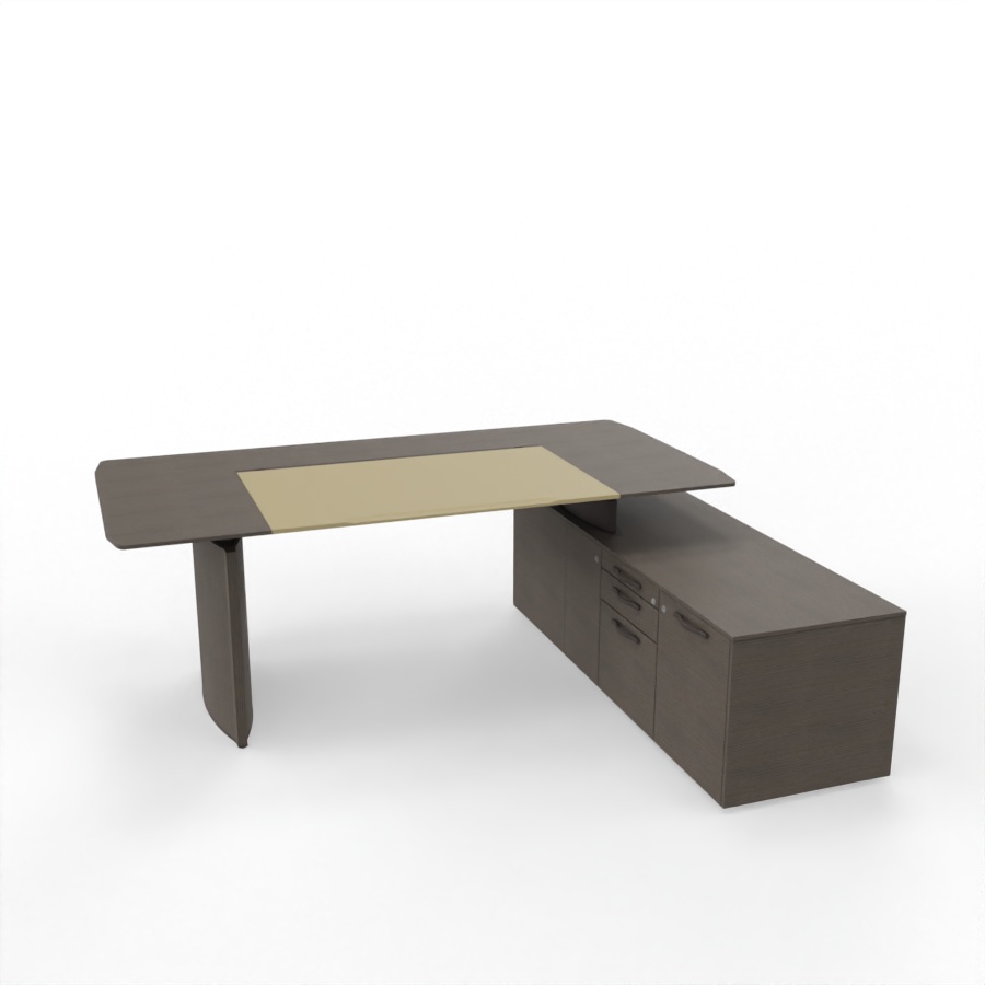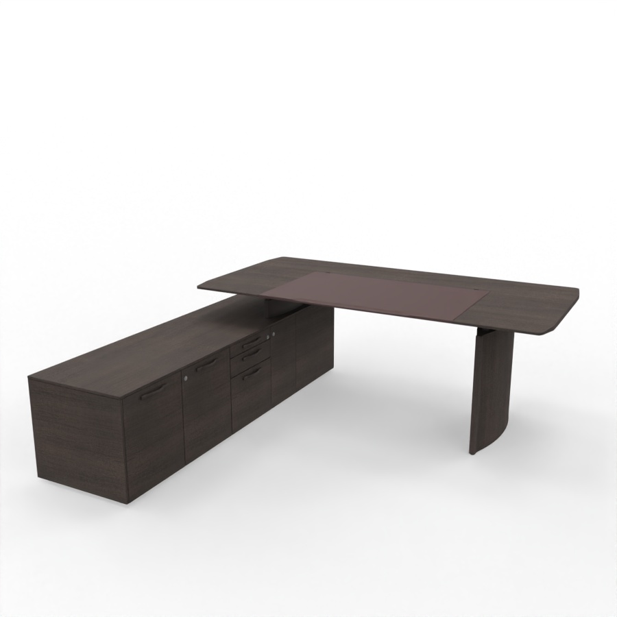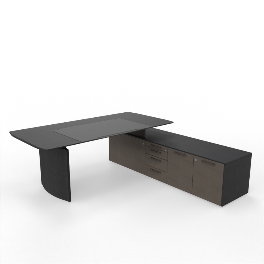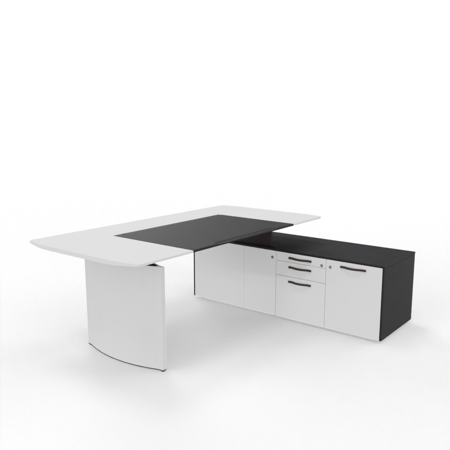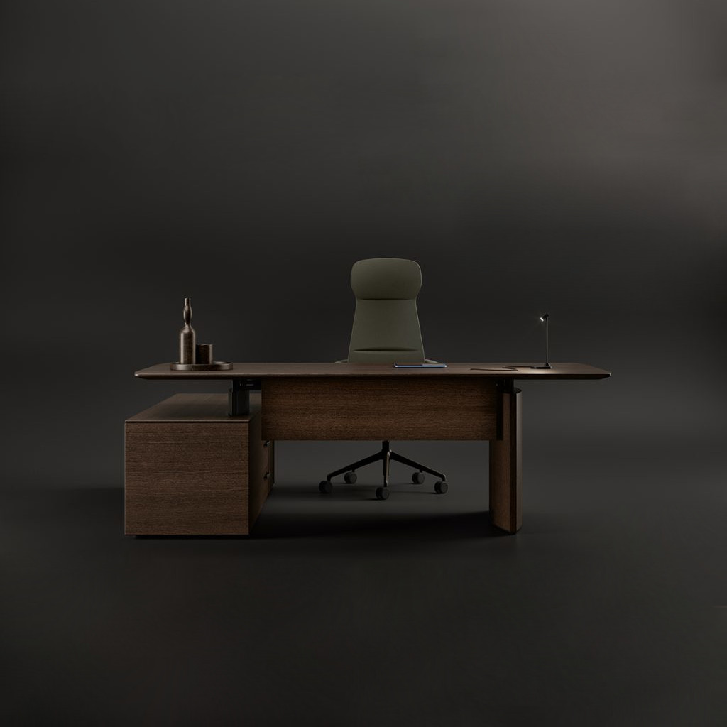 Einmal mehr beeindruckt Bralco mit einem Chefschreibtisch der Extraklasse. Hergestellt aus qualitativ hochwertigen Materialien, ist der Tisch mit Sideboard ein absoluter Blickfang. In Büros der Chefetage unterstützt das Schreibtisch-Duo mit der Eleva Design-Kollektion diejenigen, die Tag für Tag strategische Entscheidungen treffen.