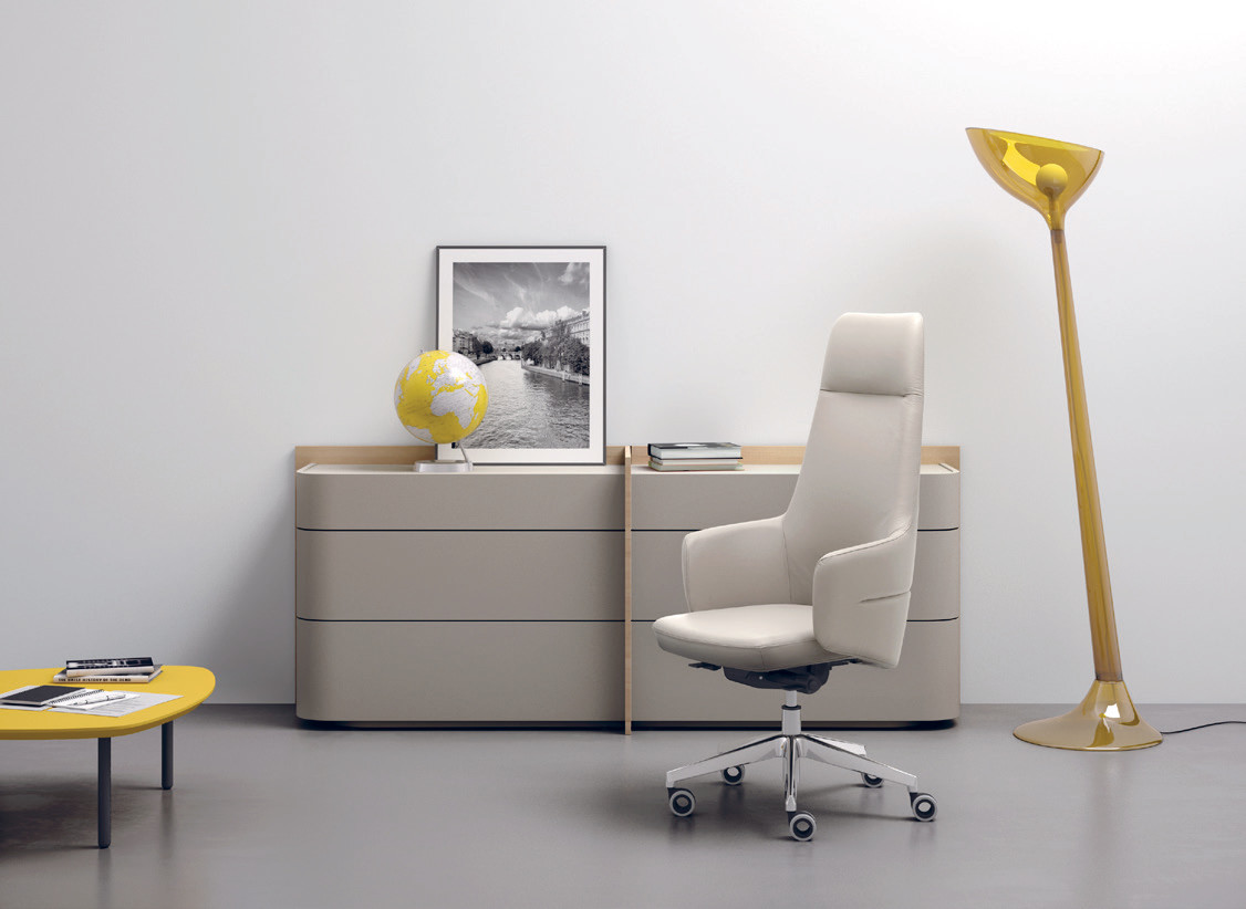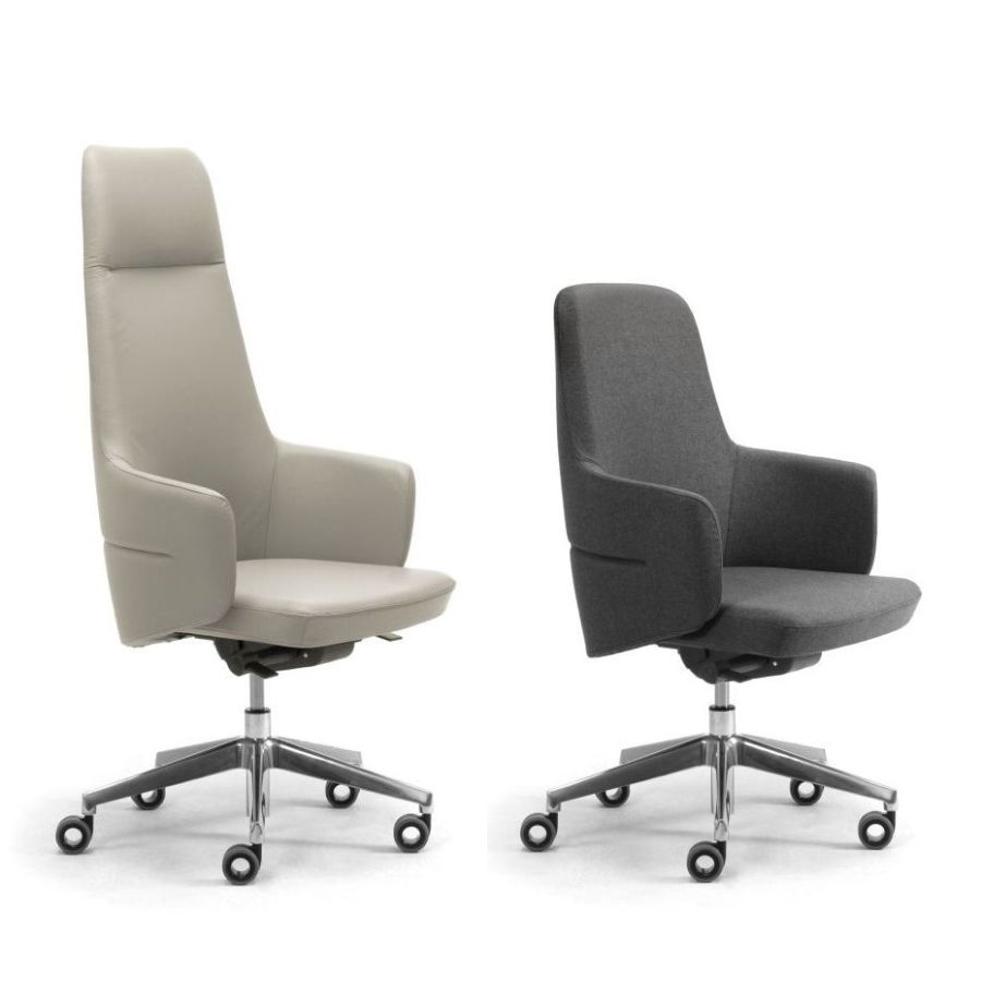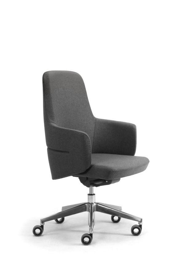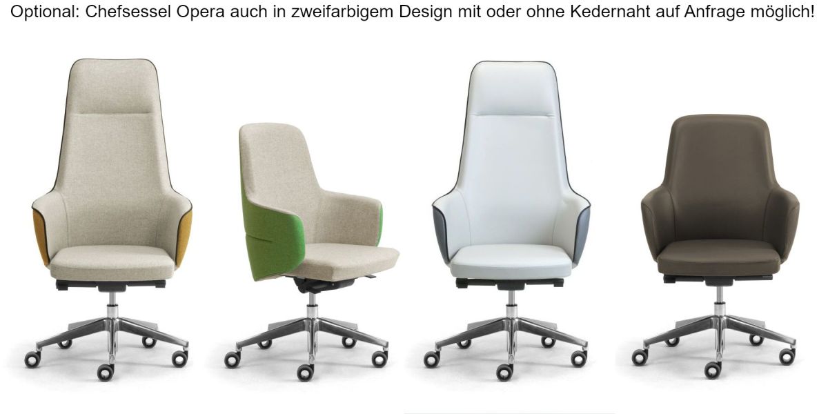Eine umhüllende Schale, die dank ihrer geschwungenen Formen den Rücken sanft umschließt: Die Serie Opera mit Drehsessel für die Chefetage schlägt ein neues Kapitel unter den optisch beeindruckenden Chefsesseln von Leyform auf. Er steht für ein neues Verständnis von Ergonomie und Komfort, geprägt von fließenden Linien, die das Material formen und eine zugleich solide und plastische Gestalt schaffen. Opera zeichnet sich durch ein zeitgemäßes Design mit raffinierten Linien aus. Der Drehsessel besticht zudem durch seine starke optische Wirkung und ist die erste Wahl für alle Führungsbereiche, in denen ein Bild von Prestige gegenüber Gästen und Besuchern vermittelt werden soll.