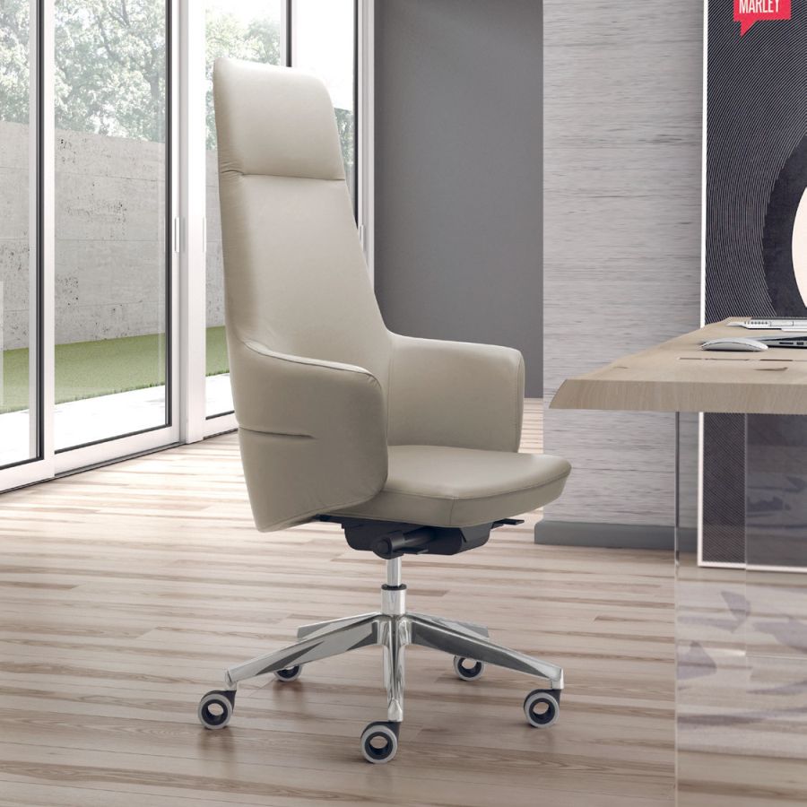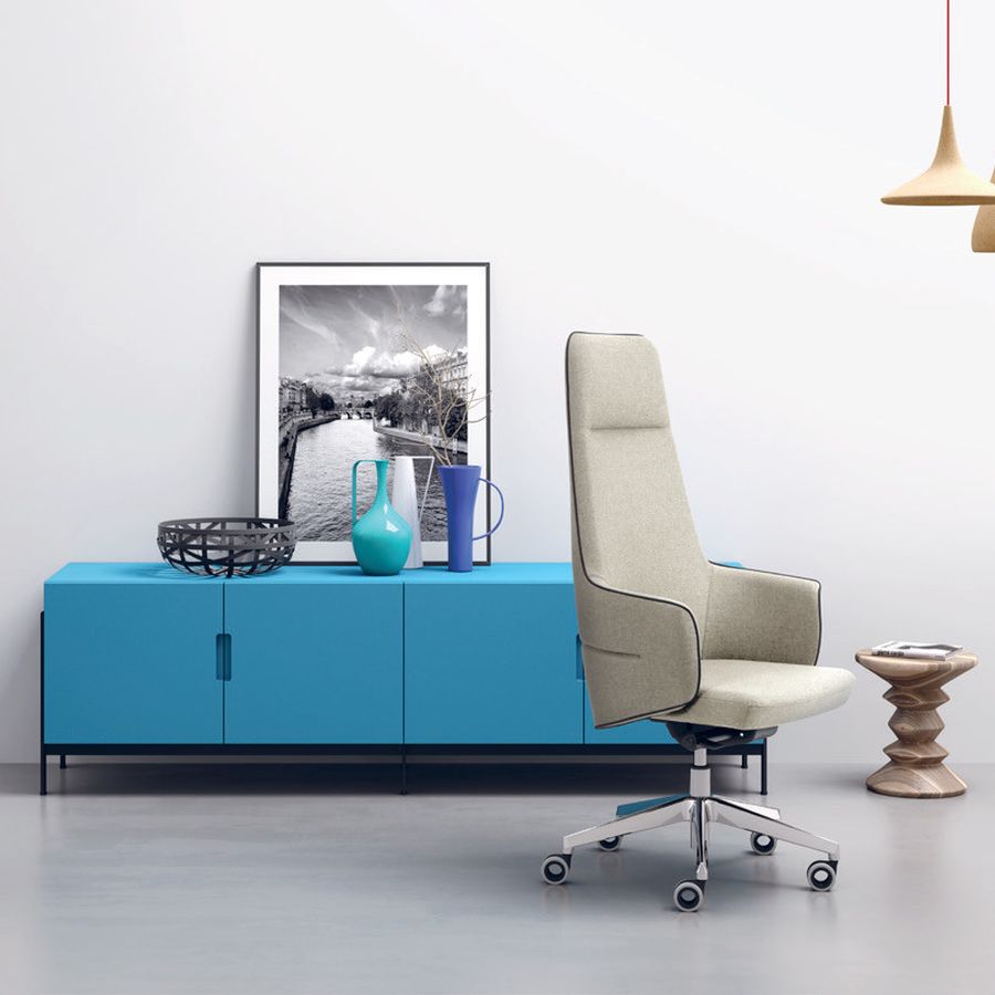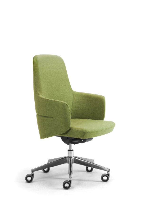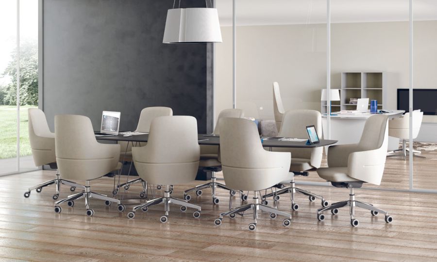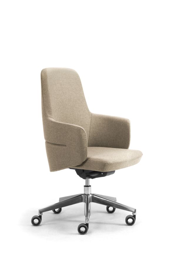 Eine umhüllende Schale, die dank ihrer geschwungenen Formen den Rücken sanft umschließt: Die Serie Opera mit Drehsessel für die Chefetage schlägt ein neues Kapitel unter den optisch beeindruckenden Chefsesseln von Leyform auf. Er steht für ein neues Verständnis von Ergonomie und Komfort, geprägt von fließenden Linien, die das Material formen und eine zugleich solide und plastische Gestalt schaffen. Opera zeichnet sich durch ein zeitgemäßes Design mit raffinierten Linien aus. Der Drehsessel besticht zudem durch seine starke optische Wirkung und ist die erste Wahl für alle Führungsbereiche, in denen ein Bild von Prestige gegenüber Gästen und Besuchern vermittelt werden soll.