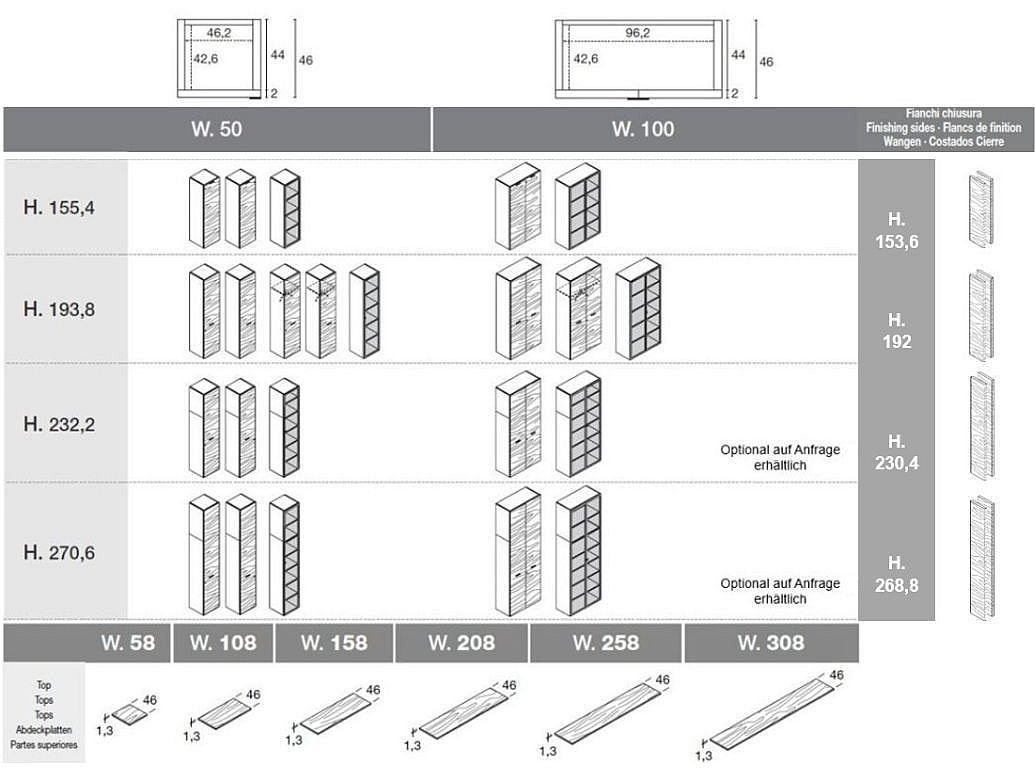 Aktenschränke in 2 Breiten (50/58 und 100/108 cm) und 2 Ordnerhöhen (4 OH, 5 OH) mit Top und Seitenflanken