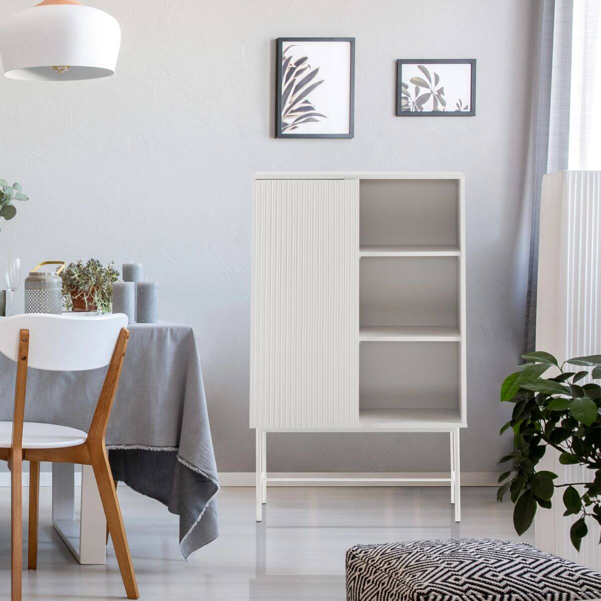 Highboard / Regal Farum, mit 1 Tür und 3 offenen Fächern – schlicht und modern in jeder Umgebung