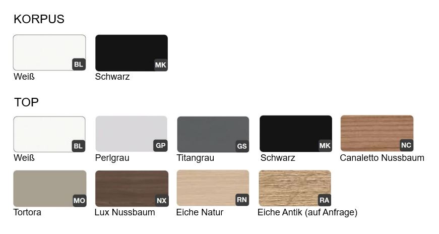 Aufgrund der Vielzahl der Gestaltungsmöglichkeiten, können wir Ihnen hier nicht alle Farbvarianten präsentieren. Gerne erstellen wir Ihnen aber eine Darstellung in 3D in den gewünschten Farben.