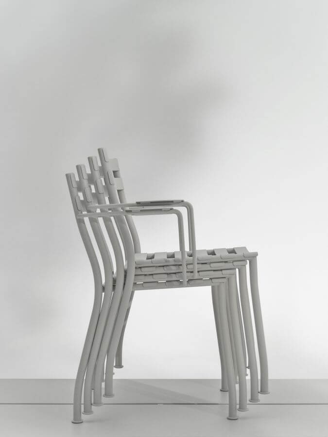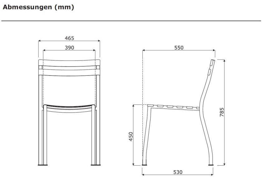 • Sitzfläche & Rückenlehne: Sprossen aus verzinktem Stahl, außen pulverbeschichtet, Stärke 2 mm
