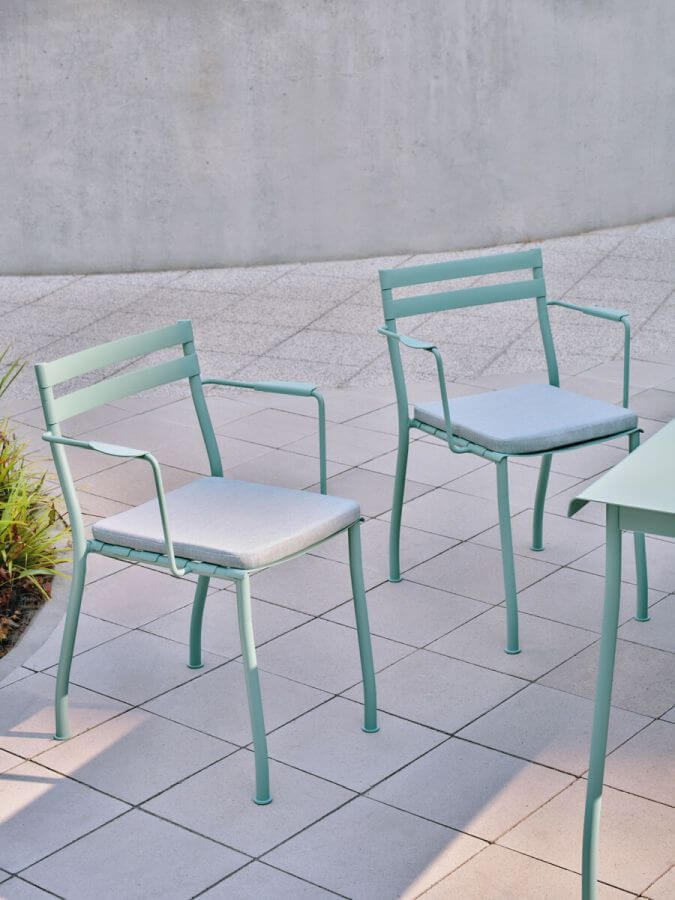 Die idealen Begleiter für Entspannungs- und Pausenbereiche im Freien sind die modernen Outdoor-Stühle Flaner, im 2er Set. Dank des bequemen Designs laden die Stühle zu erholsamen Auszeiten ein, bei der sie maximalen Komfort bieten. Die Lounge-Stühle sind aus hochwertigem, verzinktem Stahl hergestellt und extra mit witterungsbeständiger matter Farbe für den Außenbereich beschichtet, was den Sitzmöbeln eine lange Lebensdauer verleiht. In Anlehnung an die Form der Stühle aus der Flaner-Serie ermöglichen die Metallstühle eine stimmige Gestaltung des gesamten Außenbereichs. Die charakteristisch geschwungenen Beine sind ein toller Eyecatcher, der die Blicke auf sich zieht und an die Typologie traditioneller Stadtmöbel anknüpft.
