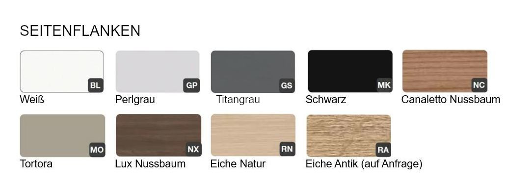 Geben Sie Ihren ABA Schränken oder Regalen einen farblichen Akzent mit den Seitenflanken von Bralco. Die Flanken sind nicht nur ein farblicher Eyecatcher sondern schließen den Korpus sauber ab. Wählen Sie zu Ihrem Top die passende Seitenverkleidung aus einer Vielzahl von Melaminfarben aus.