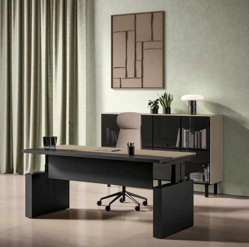 Kombinieren Sie den elektrisch höhenverstellbaren Design-Schreibtisch mit weiteren Büromöbeln der Serie SILE wie z. B. funktionale Sideboards, Rollcontainer oder Stauraummöbeln.