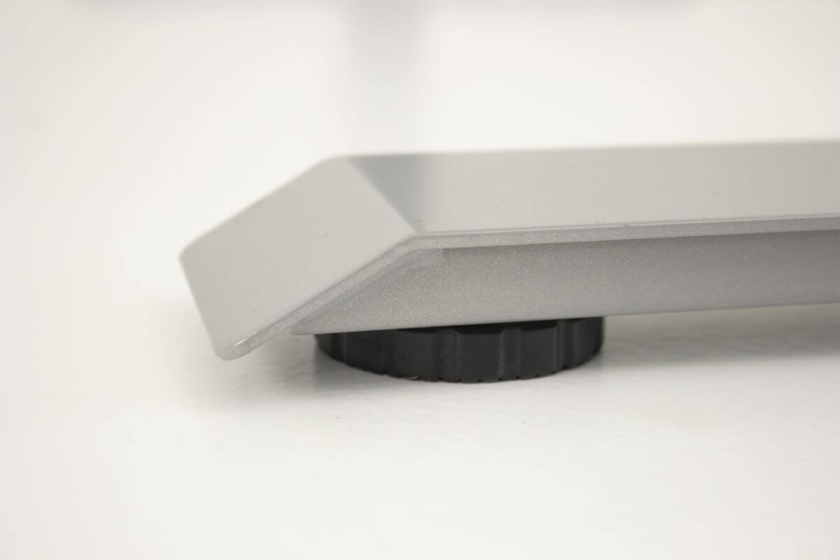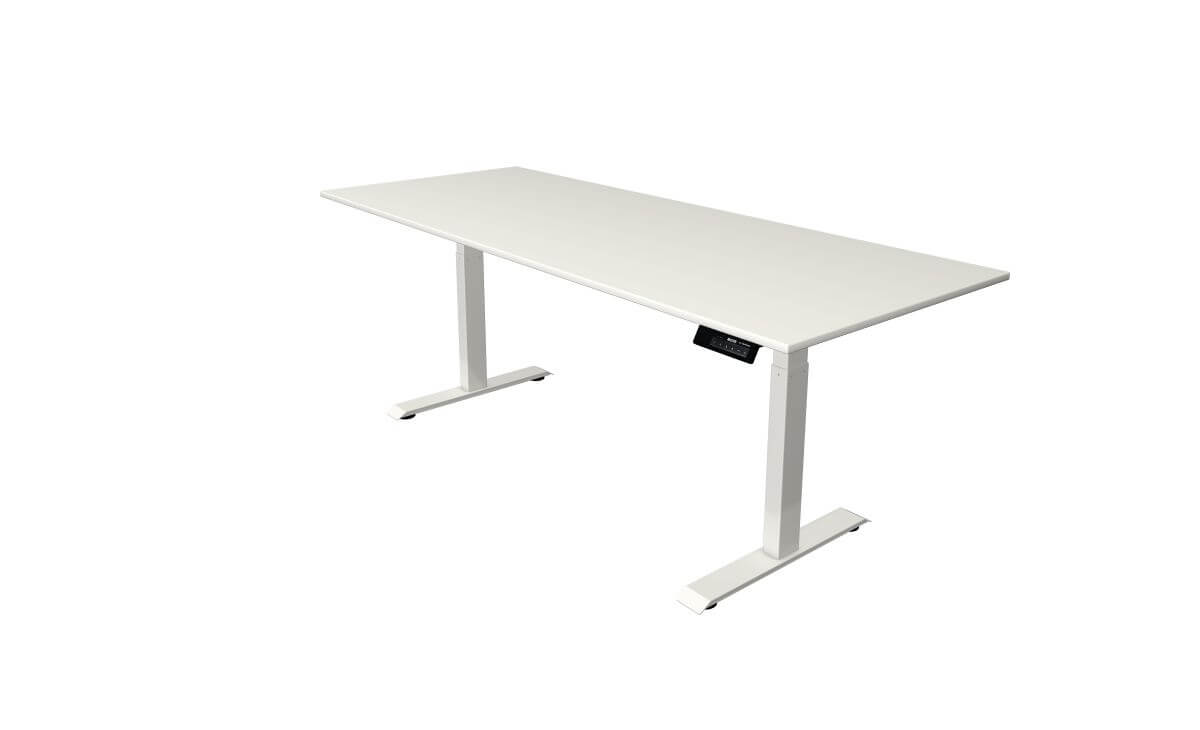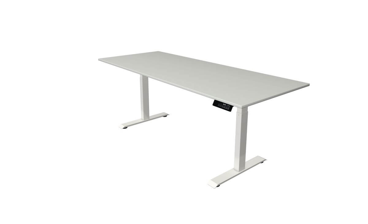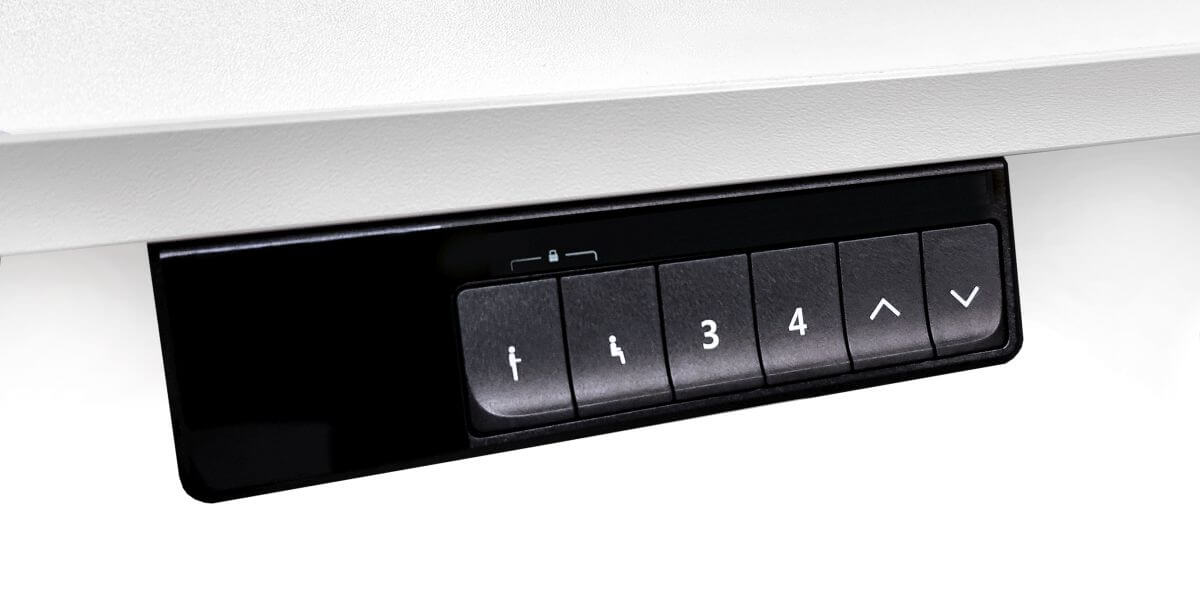 Die Tischplatten sind aus Gütespan gemäß DIN EN 14322. Sie verfügen über eine langlebige Melaminharzbeschichtung und stoßfeste ABS-Kanten. Das Gestell verfügt über 2 Motoren mit Sanft-Anlauf und Sanft-Stopp sowie Kollisionsschutz. Bei Kollision wird jede Bewegung gestoppt und die Säule zurückgefahren. Memory-Funktion mit Höhen-Anzeige, 4 Höhen speicherbar.